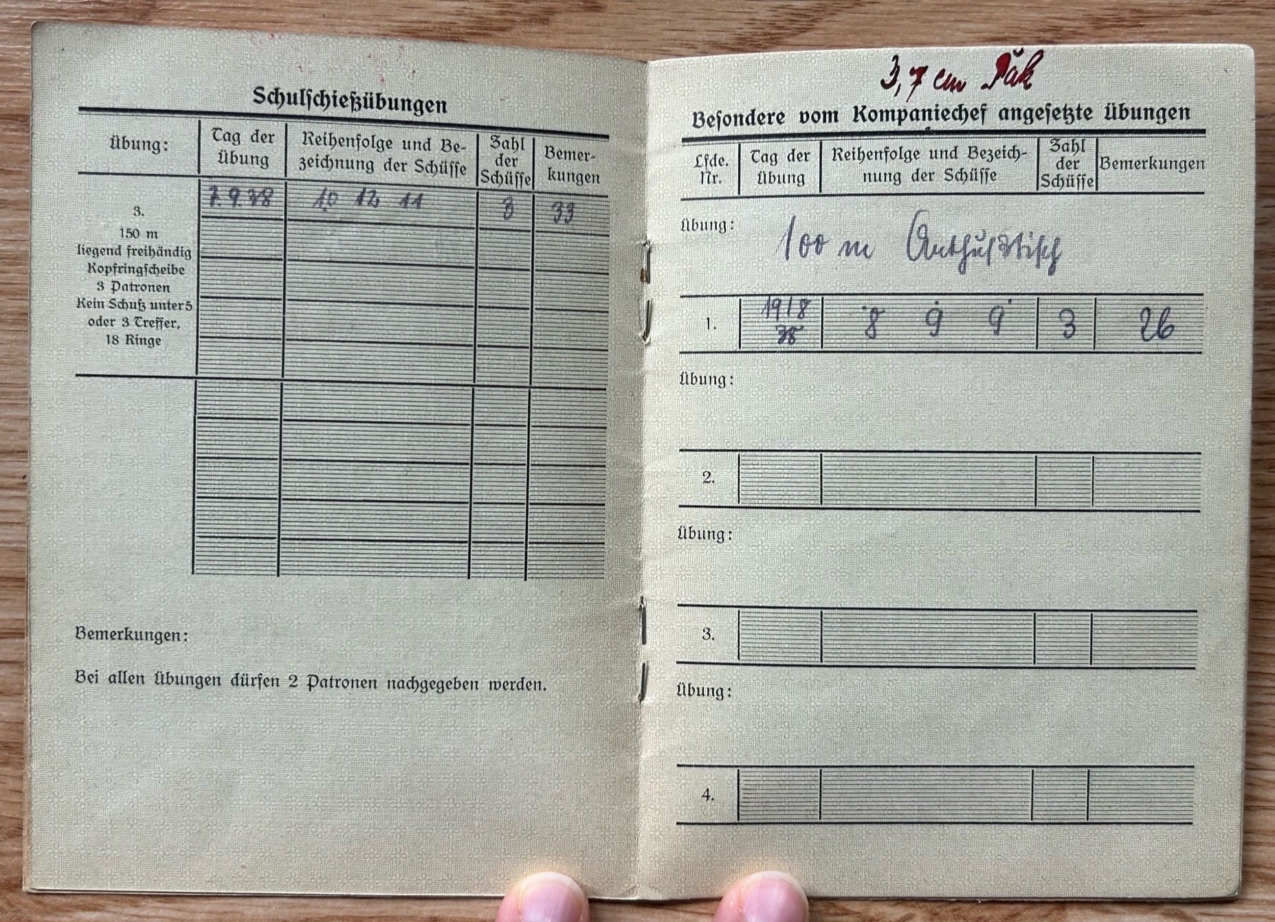 Schiessbuch / Target practice booklet - Panzerjager unit